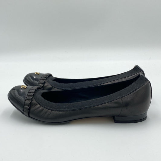5h29《美品》 CHANEL シャネル ココマーク フリルレザー バレエシューズ G26480 37 ブラック ラムレザー フラットパンプス バレリーナ 箱 保存袋付属t18r
