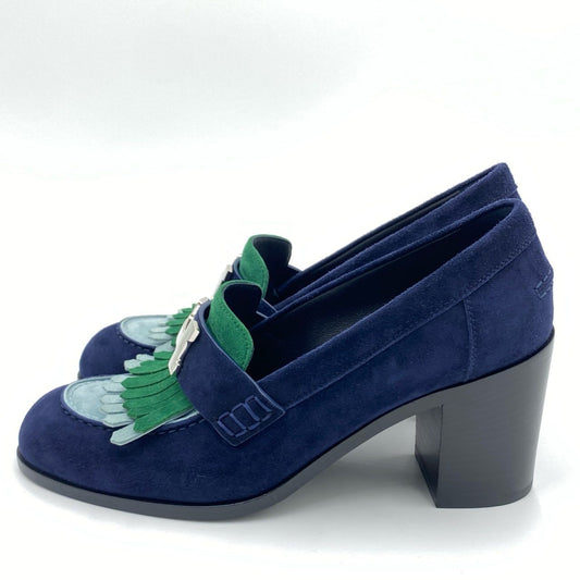 5h29 《極美品》 HERMES エルメス エリゼ70 ロワイヤル フリンジ パンプス 36 1/2 ネイビー スエードレザー シューズ 箱 保存袋付属t18r