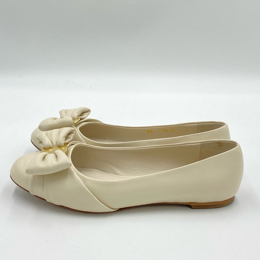 2i3《美品》 Salvatore Ferragamo サルヴァトーレフェラガモ Pre-Oened プレオウンド Varina リボンフラットシューズ 7 1/2 ホワイト レザー パンプスt18r