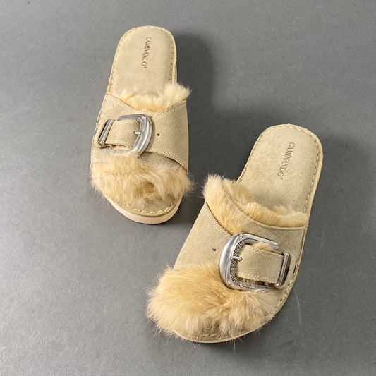 1A14 CAMINANDO カミナンド SINGLE STRAP ECO FUR SANDAL エコファーサンダル 5 ベージュ スウェードレザー バックル