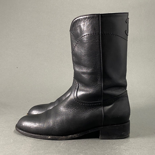 1L25《伊製》CHANEL シャネル ココマーク レザーブーツ ミドルブーツ 40 ブラック レザー レディース 靴