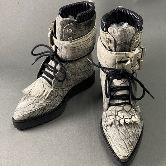 3A14 ALEXANDER WANG アレキサンダーワン ダブルモンク レースアップブーツ 35 グレー ベルト フリンジ