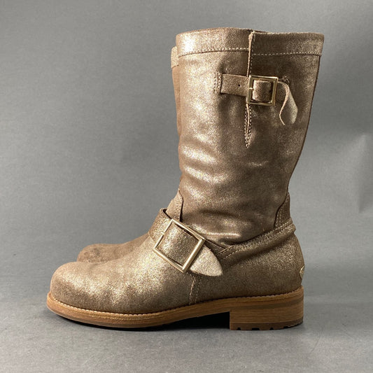 1A14 《参考定価\119,900》 JIMMY CHOO ジミーチュウ YOUTH ショートブーツ 35 ゴールド レザー ラメ エンジニアブーツ BIKER バイカー