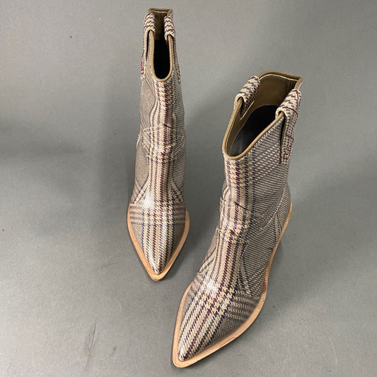 1L26 FENDI フェンディ チェック ウエスタンブーツ 37 グレー カウボーイ ウッドソール イタリア製 シューズ