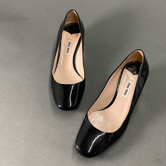 1L26 miu miu ミュウミュウ クリスタルジュエル ビジューヒールパンプス 37 1/2 ブラック パテントレザー パーティ 結婚式