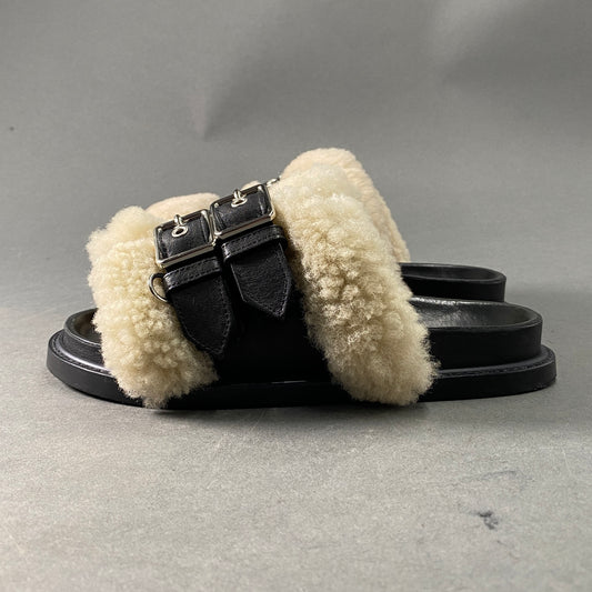 1A14 PIPPICHIC ピッピシック ダブルストラップ ファーサンダル 35 ブラック レザー シューズ ボア ベルト