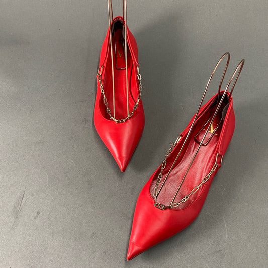 2L26 VALENTINO GARAVANI ヴァレンティノ ガラヴァーニ ゴールドチェーン フラットシューズ 38 レッド レザー シューズ イタリア製