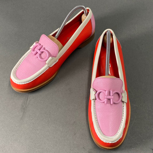 1L24 《美品》 Salvatore Ferragamo サルヴァトーレ フェラガモ 2022年モデル ガンチーニ ローファー 7 ピンク レッド レザー シューズ