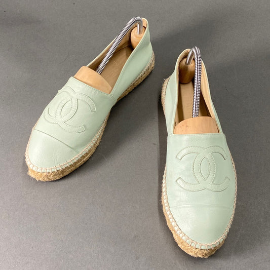 2L24 CHANEL シャネル ココマーク レザー エスパドリーユ 38 アイスグリーン レザー スリッポン フラットシューズ G29672