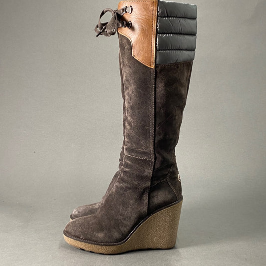 1L26 MONCLER モンクレール スウェード ロングブーツ 38 ブラウン レザー シューズ ダウン サイドジップ