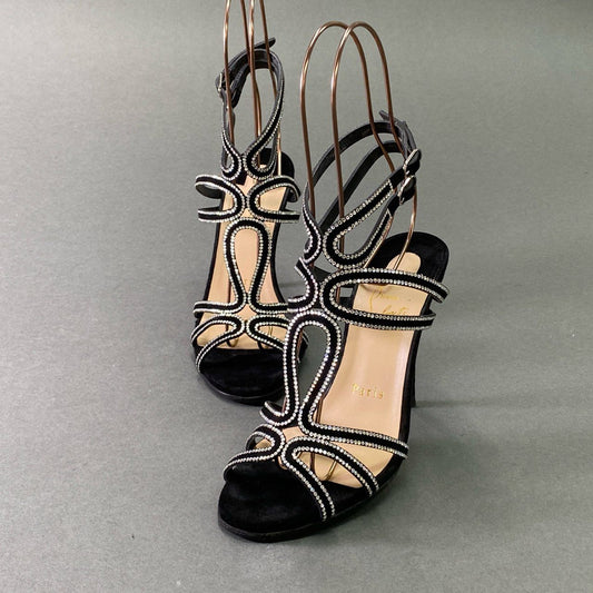 5e30 《極美品》 Christian Louboutin クリスチャンルブタン RENEE STRASS 100 ラインストーン クリスタルヒールサンダル 36 ブラック スエードレザー パンプス 箱付き