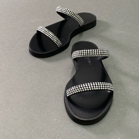 1e26 《美品》 EMPORIO ARMANI エンポリオアルマーニ ラインストーン ビーチサンダル X3P739 22..5cm ブラック ビジュー クリスタル シューズ 夏 箱付き