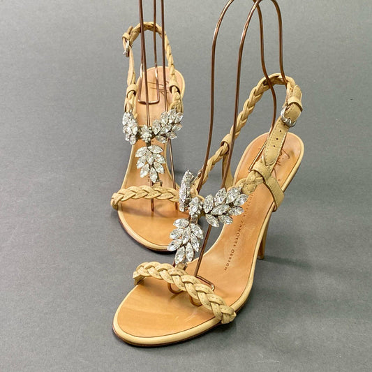 1e26 《美品》 GIUSEPPE ZANOTTI ジュゼッペザノッティ クリスタルビジュー レザーサンダル 37 ベージュ Leather アンクルストラップ シューズ 夏