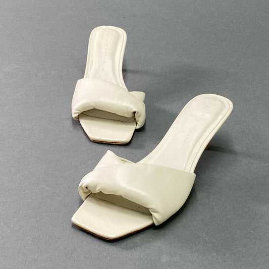 1e26 《美品》定価¥53.900 STUDIO AMELIA スタジオアメリア TWISTED FRONT SANDAL ツイステッドサンダル 23.5cm ホワイトベージュ レザー シューズ 夏
