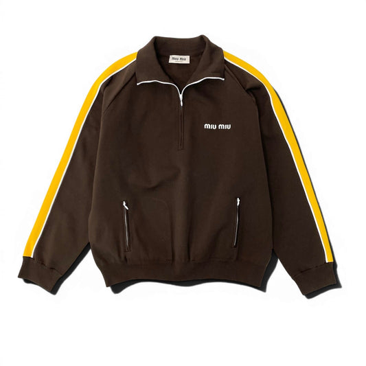 Id20 【現行モデル】miu miu ミュウミュウ テクニカルヤーン ジッパースウェットシャツ サイズ44 ブラウン レディース ユニセックス可k02i