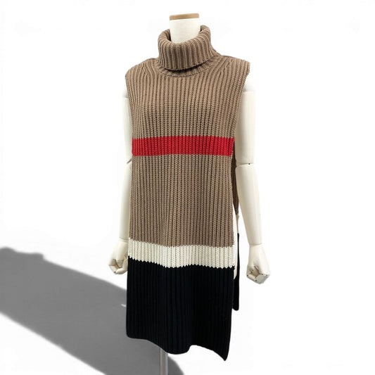 Ed20 BURBERRY バーバリー タートルネック ケープ ポンチョ ニットセーター ローゲージニット 146×40cm ベージュ レディース 女性用nu1