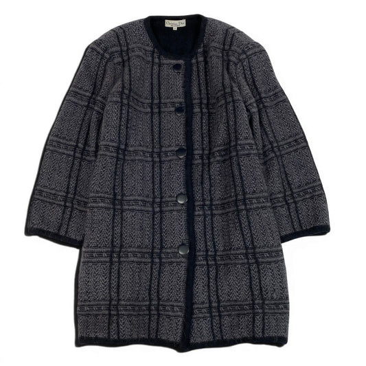 21d18 Christian Dior クリスチャンディオール ロングスリーブ ニットカーディガン ミディアム丈 総柄 Mサイズ グレー系 レディース 女性用u02t