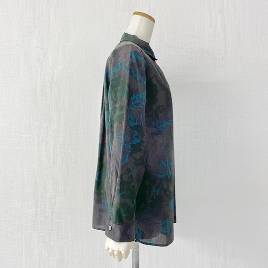 45a31 《美品》 Y's for living ワイズフォーリビング 長袖シャツ ブラウス ドルマンスリーブ グリーン 花柄 ポリエステル100% レディース 女性用
