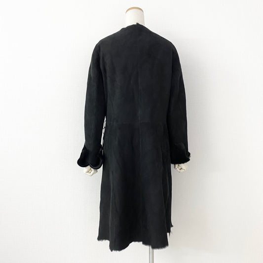 85h28 《美品》 イタリア製 BORGOFIORI ボルゴフィオーリ リアルムートンコート ジャケット 40 ブラック ラムスキン レディース