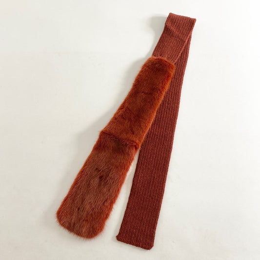 h28 【イタリア製】 PRADA プラダ ミンク × ニット マフラー 襟巻き レディース ストール 婦人