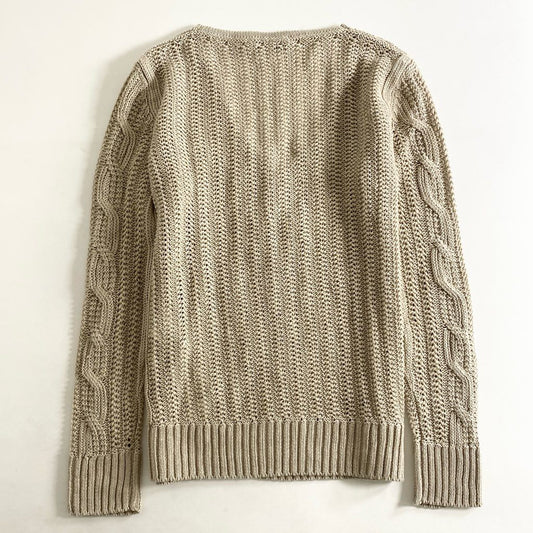 38h23 《美品》 MaxMara マックスマーラ Vネックセーター トップス ニット リネン100% プルオーバー 長袖 S ベージュ 麻