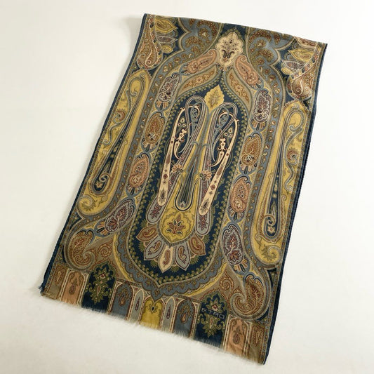 h27 イタリア製 ETRO エトロ ストール マフラー ペイズリー柄 イエロー×ブルー ウール×シルク素材 ユニセックス 男女兼用