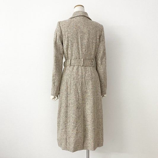 84h27 Brooks Brothers ブルックスブラザーズ ロングコート ツイードコート ベルテッドコート サイズ2 アイボリー レディース
