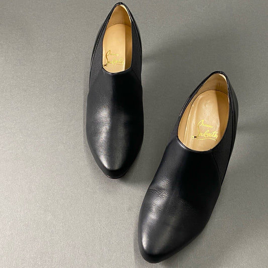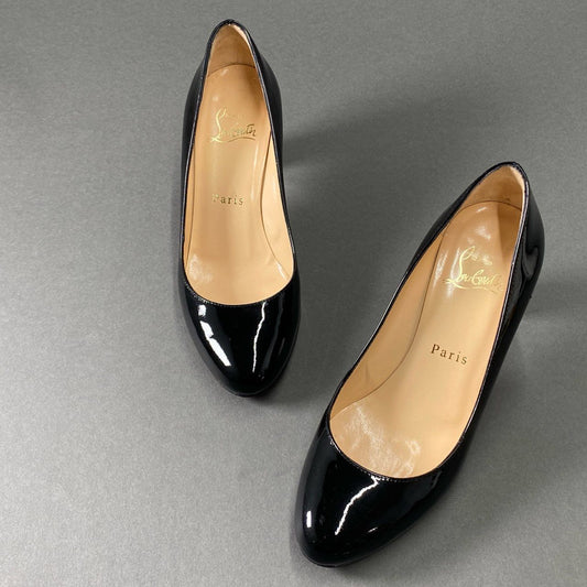 3f26 Christian Louboutin クリスチャンルブタン プレーントゥ パンプス チャンキーヒール サイズ35 ブラック パテントレザー レディース 女性用 靴
