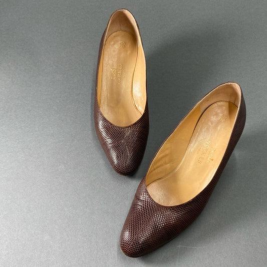 6f26 HERMES エルメス レザーパンプス リザードレザー エキゾチック サイズ37 ブラウン レディース 女性用 靴