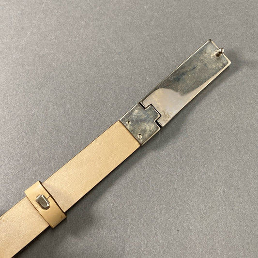 33f23 《美品》 GUCCI グッチ メタルプレート レザー 細ベルト ベージュ シルバー イタリア製 タグ付き