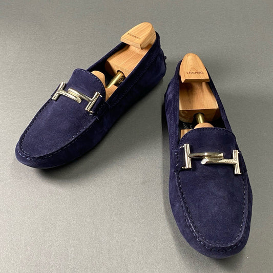 2f26 TOD'S トッズ シルバーバックル ドライビングシューズ ローファー レザーシューズ サイズ39 ネイビー スウェード レディース 女性用 靴