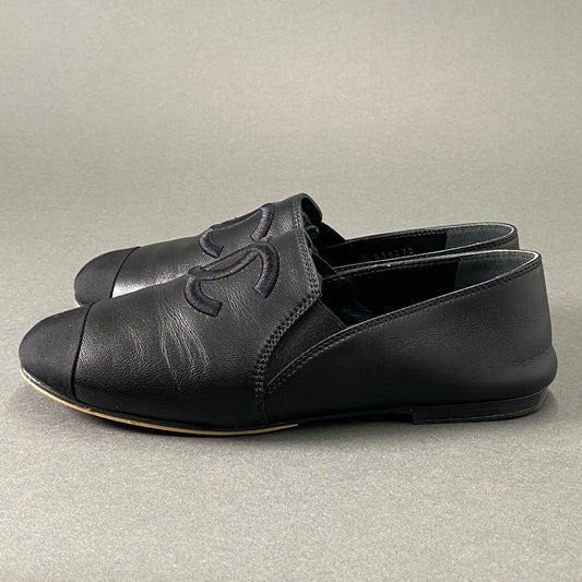 1f24 【美品】 20SS CHANEL シャネル G36272Y54064 ココマーク フラットシューズ レザーシューズ 05C復刻 36C ブラック レザー レディース 婦人 靴