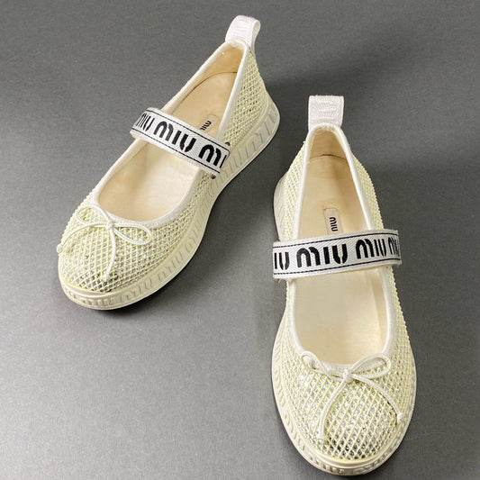 9f26 miu miu ミュウミュウ ベルクロ ブランドロゴ入り グリッタースニーカー シューズ サイズ37 1/2 オフホワイト レディース 靴