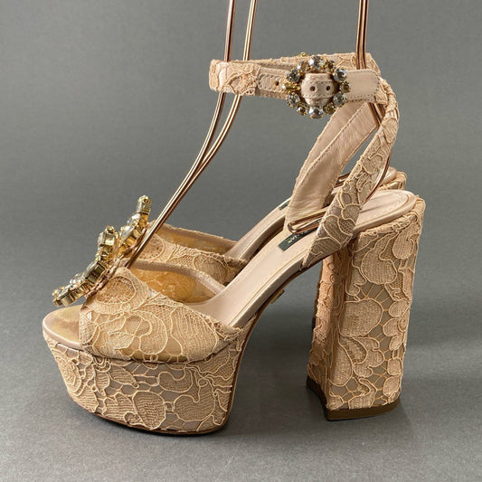 4f24 DOLCE&GABBANA ドルチェアンドガッバーナ ビジュー付 レースヒールサンダル パンプス 35 ピンク D&G ドルガバ イタリア製