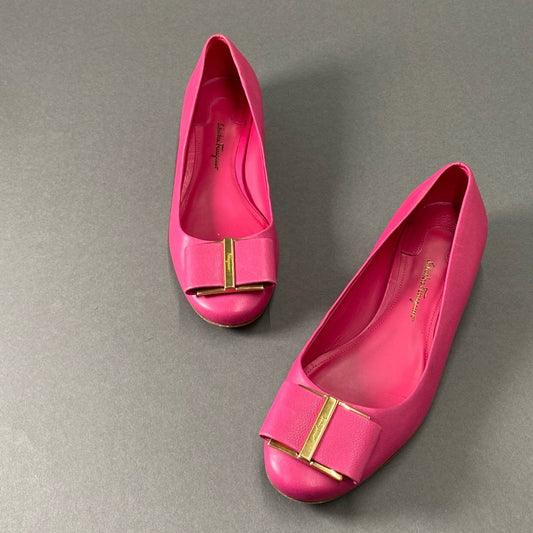 2f23 Salvatore Feragamo サルヴァトーレフェラガモ ヴァラリボン フラットシューズ フラットパンプス 6 1/2 ピンク レディース 婦人靴