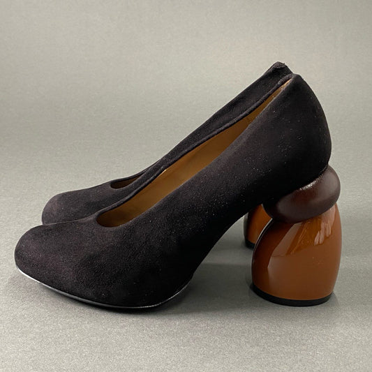 3f24 【美品】 DRIES VAN NOTEN ドリスヴァンノッテン スエードレザー デザインヒールパンプス 35 1/2 ブラック シューズ イタリア製 箱付き