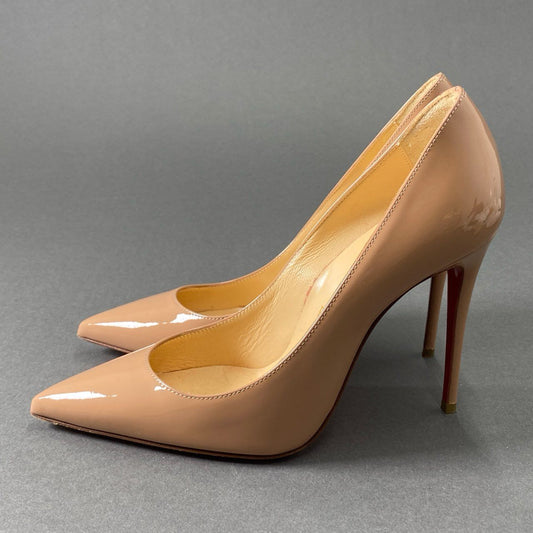 4f26 Christian Louboutin クリスチャンルブタン KATE 100 PATENT パンプス ピンヒール サイズ34 1/2 ピンクベージュ パテントレザー レディース 女性用 靴