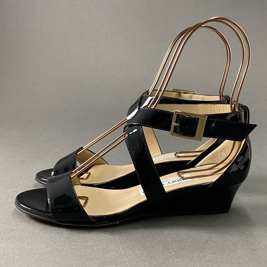 3f18 《美品》 JIMMY CHOO ジミーチュウ CHIARA エナメル アンクルストラップサンダル 36 1/2 ブラック パテントレザー イタリア製 シューズ