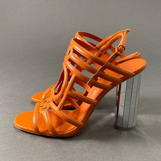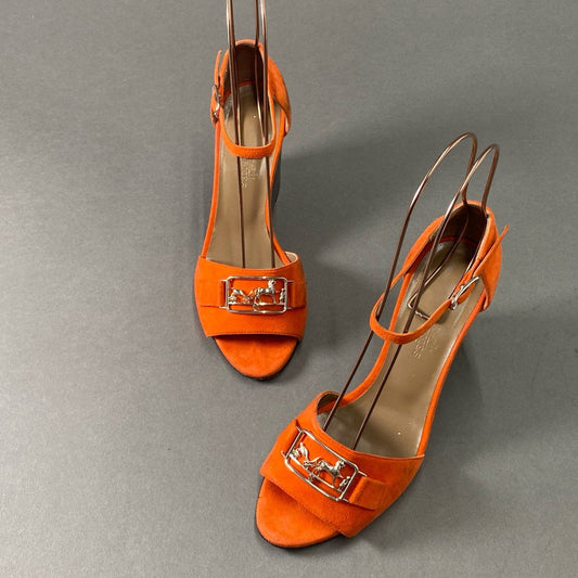 6f18 HERMES エルメス ル・デュック ヒールサンダル 36 オレンジ スエードレザー ハイヒール イタリア製 馬車ロゴ