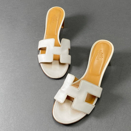 6f18 HERMES エルメス OASIS オアジス Hロゴ モチーフ サンダル 38 ホワイト レザー シューズ イタリア製