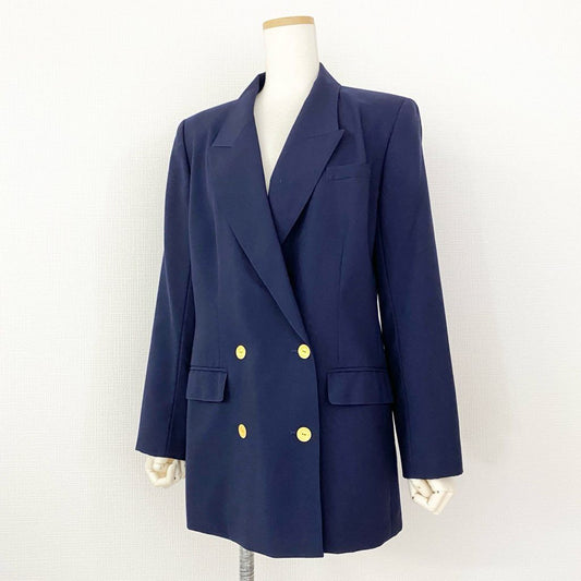 43f18 LEONARD SPORT レオナール 紺ブレザー刻印金ボタン ダブルジャケット テーラードジャケット 裏地総柄 0591790 サイズM ネイビー ウール レディース