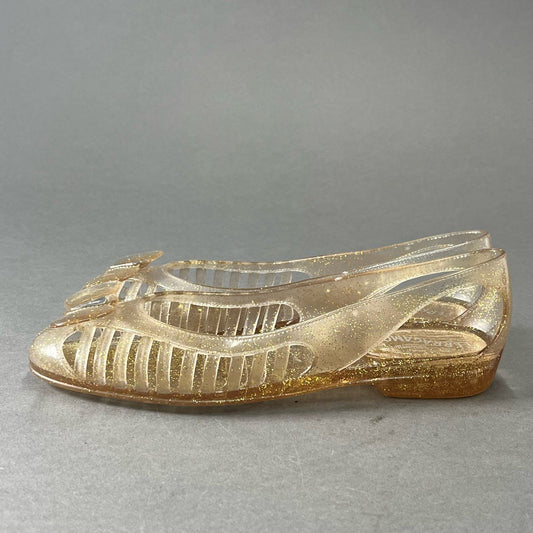 2f18 《美品》 Salvatore Ferragamo サルヴァトーレ フェラガモ SPIFFY フラットシューズ サンダル ゴールドラメ 7 クリアカラー ラバー イタリア製 箱付