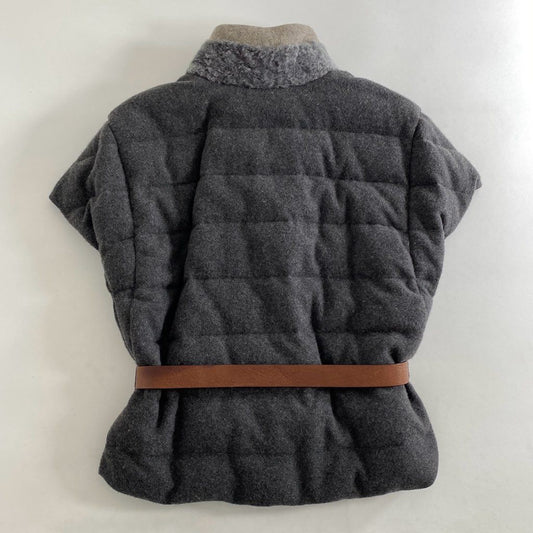 51f18 FABIANA FILIPPI ファビアナフィリッピ レザーベルト付 ダウンベスト 40/XS グレー イタリア製 レディース
