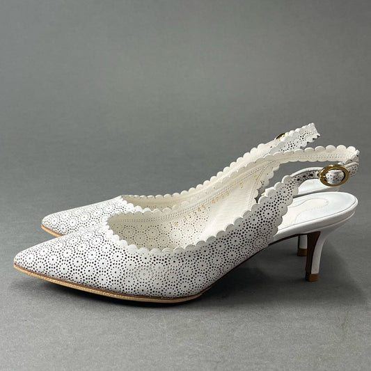 1f18 Salvatore Ferragamo サルヴァトーレ フェラガモ MALY LACE ミュール パンプス 5 ホワイト レザー サンダル シューズ イタリア製