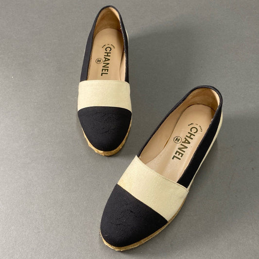 5f18 CHANEL シャネル ココマーク エスパドリーユ シューズ 36 ブラック ホワイト スリッポン フランス製