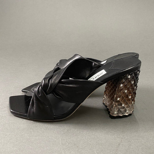 4f18 《極美品》 JIMMY CHOO ジミーチュウ HAITI 85 ダイヤモンドヒール クロスレザーサンダル 37 1/2 ブラック Leather イタリア製 シューズ