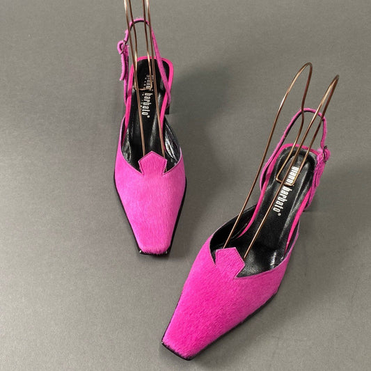 6f18 《美品》 gianni barbato ジャンニバルバート ハラコ ミュールサンダル 36 ピンク パンプス シューズ イタリア製