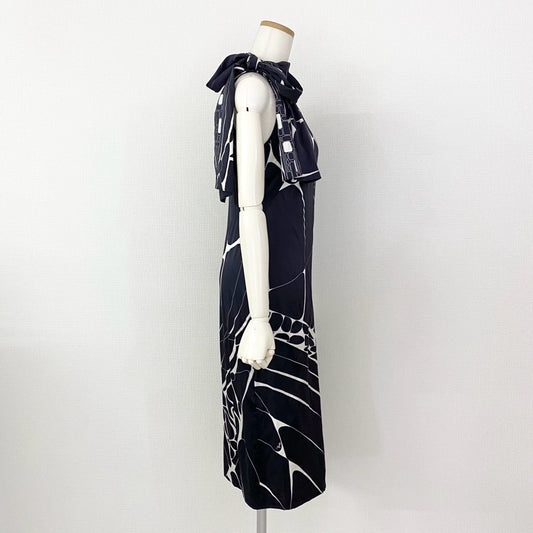 43f18 《美品》 イタリア製 EMILIO PUCCI FIRENZE エミリオプッチ シルクプリント ボウタイワンピース シルクワンピース I38(日本サイズS~M) ブラック レディース
