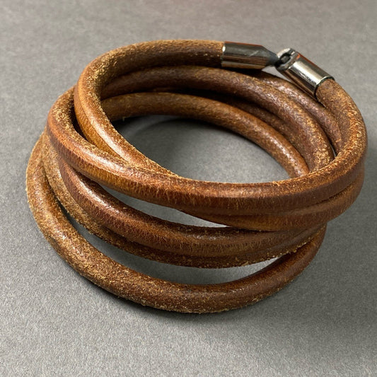 Pf16-1 HERMES エルメス 5連 レザーブレスレット ブラウン Leather Bracelet バングル アクセサリー フランス製