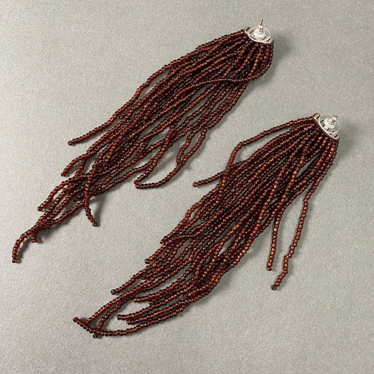 Pf16-2 定価¥36,300 LEMAIRE ルメール PEARLS CASCADE EARRINGS カスカーダ ビーズピアス ブラウン イヤリング アクセサリー フリンジ 箱付き